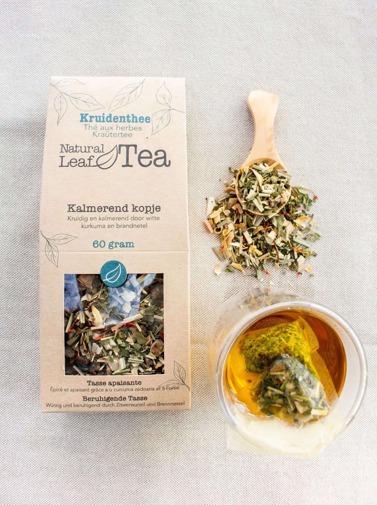 Kalmerend kopje is een kruidenthee met een zacht kruidig karakter. Witte kurkuma en brandnetel zorgen voor en aardse basis, terwijl perzik en citroengras een lichte, frisse toets geven. Hierdoor blijft de smaak in balans en prettig doordrinkbaar.